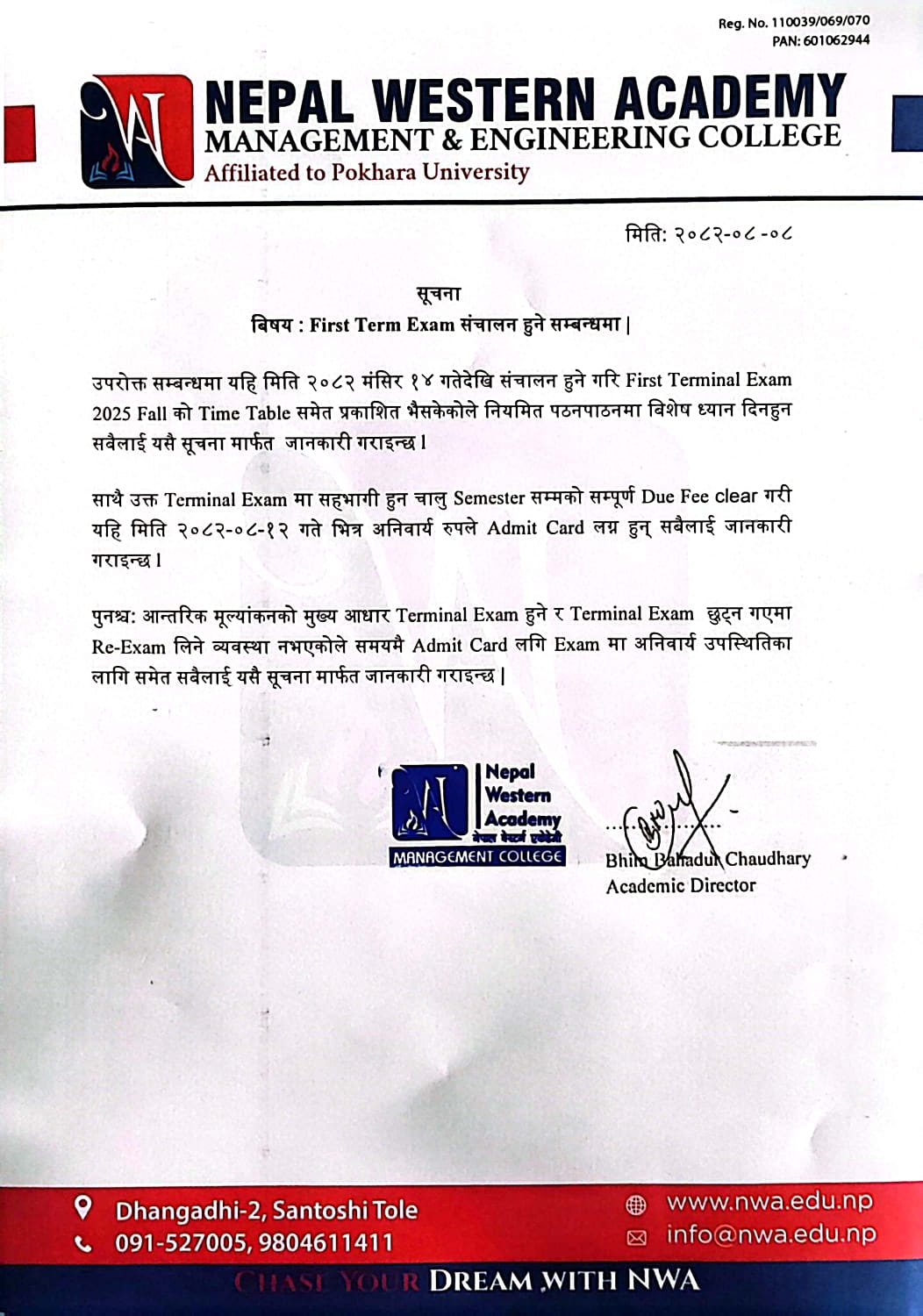 2082/08/08 First Terminal Examination Notice – 2025 Fall