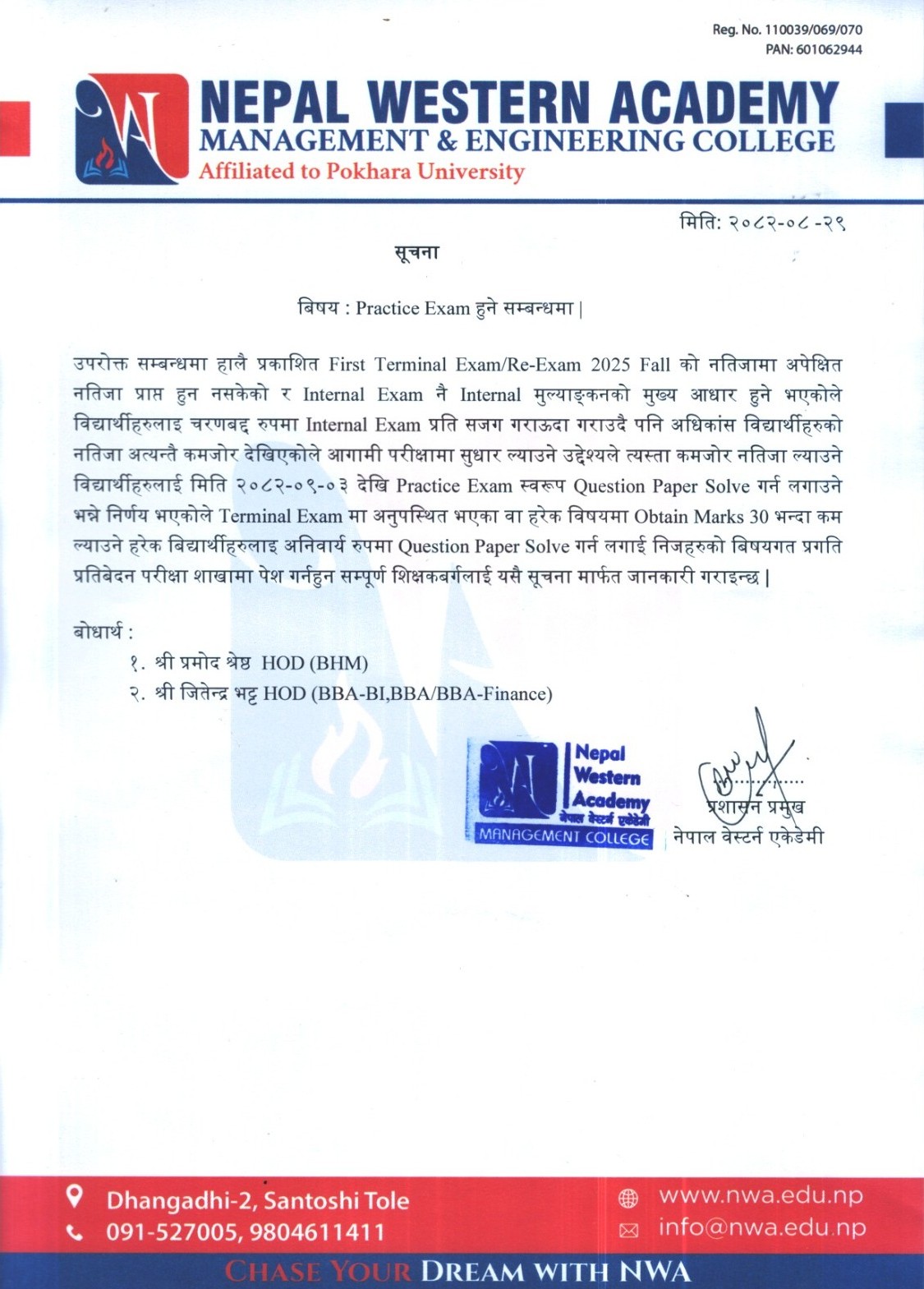 2082/08/29 Practice Exam संचालन हुने सम्बन्धमा