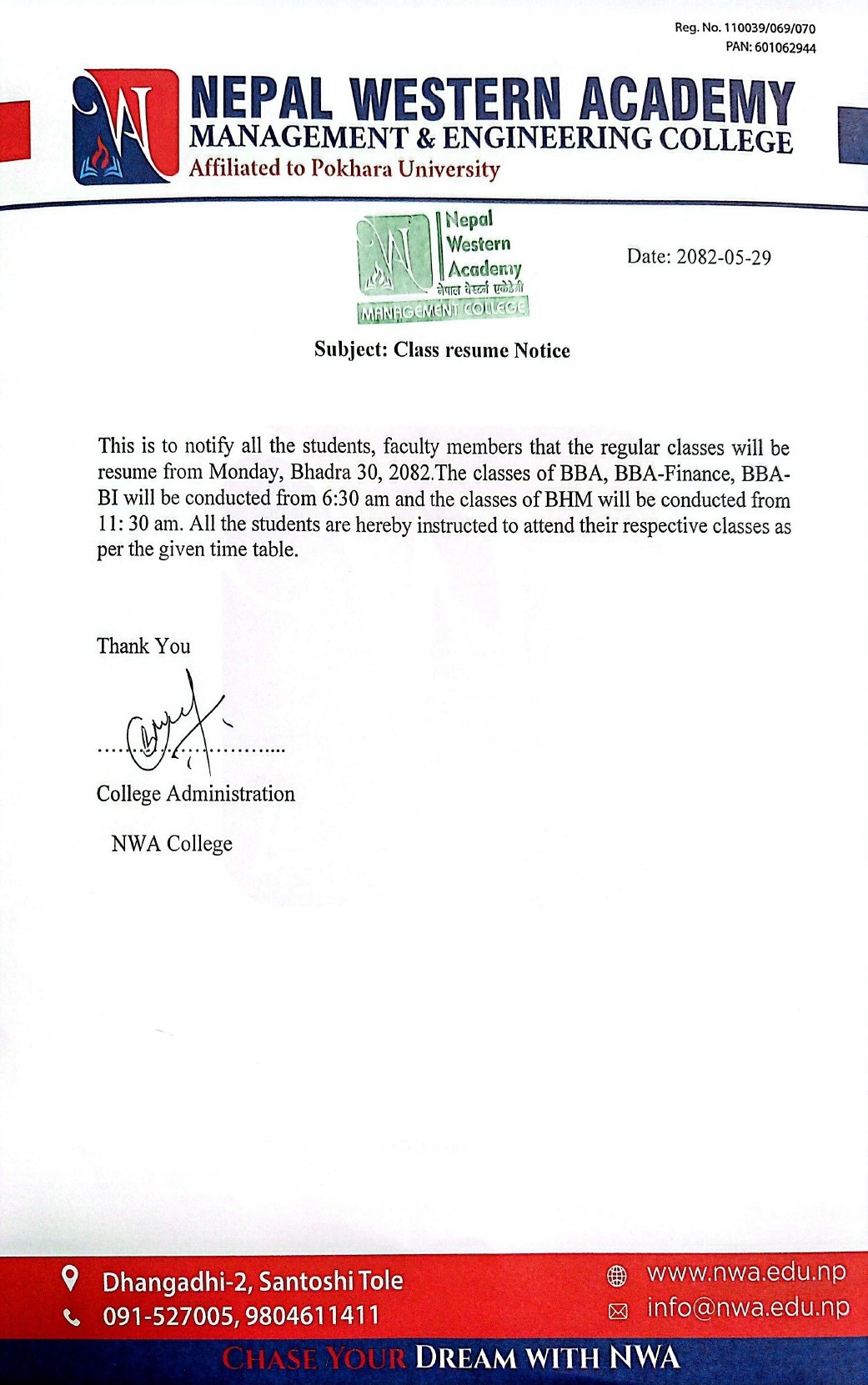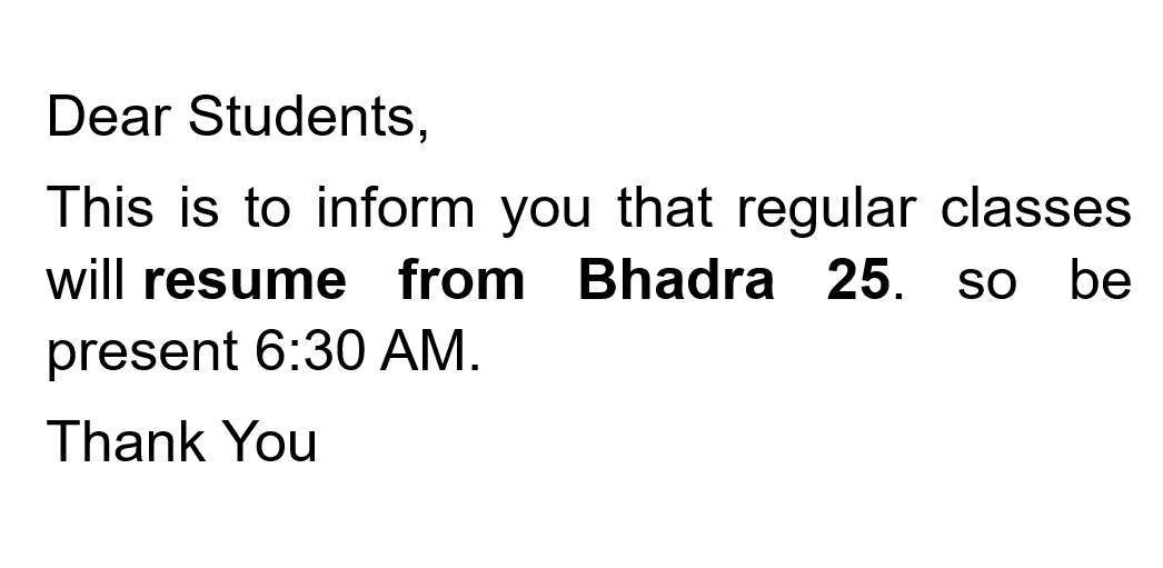2082/05/29 Class Resume Notice for BBA/BHM/BBA-Finance/BBA-BI